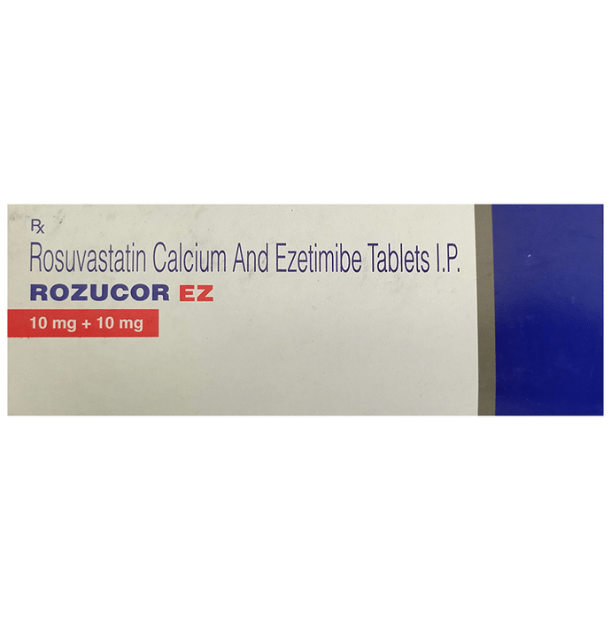 Rozucor EZ Tablet is a medicine used to treat high cholesterol. This is a combination medicine that reduces "bad" cholesterol (LDL) and triglycerides (fats) levels. It also helps to reduce risk of future heart attack and stroke. Rozucor EZ Tablet can be taken with or without food. You should take it regularly at evenly spaced intervals as per the schedule prescribed by your doctor. Taking it at the same time every day will help you remember to take it. The dose and duration of treatment will depend on what you are being treated for. Do not stop taking it until you have finished the complete course, even when you feel better. You can help this medicine work better by making a few changes to your lifestyle such as keeping active, stopping smoking, eating a healthy low-fat diet and exercise regularly. Headache, weakness, muscle pain and back pain are some common side effects of this medicine. These are usually mild but let your doctor know if they bother you or last more than a few days. Let your doctor know if you notice yellowing of skin or eyes, unusually dark urine or dark stools as it might be symptoms of liver damage. You may be asked for regular monitoring of blood sugar level, and liver function while taking this medicine. Before taking this medicine, let your doctor know if you have any kidney or liver problems or high blood pressure. Pregnant or breastfeeding women should also consult their doctor before taking it. You should also let your healthcare team know all other medicines you are taking as they may affect, or be affected by this medicine.