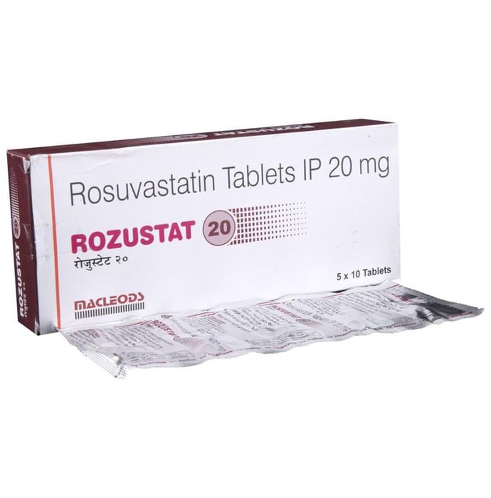 Rozustat 20 Tablet belongs to a group of medicines called statins. It is used to lower cholesterol and reduce the risk of heart disease. Cholesterol is a fatty substance that builds up in your blood vessels and causes narrowing, which may lead to a heart attack or stroke. Rozustat 20 Tablet is a widely prescribed medicine and is regarded as safe for long-term use. It can be taken with a meal or on an empty stomach. You can take it at any time of the day but try to take it at the same time each day. Most people with high cholesterol do not feel ill, but stopping your medicine may increase your cholesterol levels, making your condition worse and increasing your risk of heart disease and stroke. It is important to have your cholesterol levels checked regularly. This medicine is only one part of the treatment program which should also include a healthy diet, regular exercise, smoking cessation, moderation of alcohol intake, and weight reduction. You can eat normally while taking this medicine, but try to avoid foods that are high in fat. Common side effects of this medicine include muscle pain, weakness, nausea, headache, and stomach pain. These are usually mild and disappear after a short time. Consult your doctor if they persist or if you notice any yellowing of your eyes or get repeated or unexplained muscle pains. This medicine should not be used in conditions such as liver disease. Also, pregnant women and breastfeeding mothers should not take this medicine as it may harm the developing baby. Diabetic patients should monitor their blood sugar levels while taking this medicine, as it may lead to an increase in blood sugar levels.