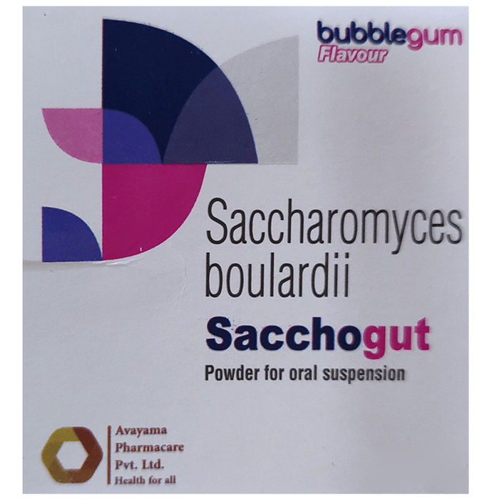 Sacchogut Powder for Oral Suspension Bubblegum is a prescription medicine used in the treatment of diarrhea. This medicine is a probiotic and it works by restoring the balance of good bacteria in the intestine that may get upset after antibiotic use or due to intestinal infections. Sacchogut Powder for Oral Suspension Bubblegum also prevent the growth of harmful bacteria in the stomach and intestine and improve the functioning of the digestive system. It is taken with or without food in a dose and duration as advised by the doctor. You may take this medicine along with oral rehydration solution (ORS) as it will help to provide adequate fluid and electrolyte replacement. The dose you are given will depend on your condition and how you respond to the medicine. You should take this medicine until your doctor tells you to stop. Consult a doctor while taking any other medicine especially steroids or antibiotics along with this medicine. The most common side effects are bloating and flatulence. Most of these are temporary and usually resolve with time. Contact your doctor straight away if you are at all concerned about any of these side effects. Before taking this medicine, you should let your doctor know if you have liver or kidney problems. Pregnant or breastfeeding women should also consult their doctor.
