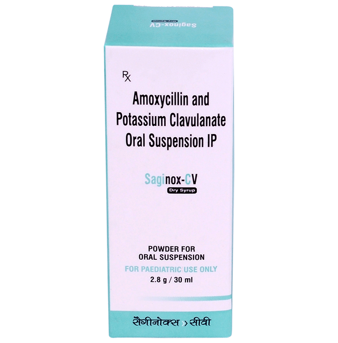 In Treatment of Resistant Tuberculosis (TB) In multidrug-resistant (MDR) tuberculosis, the causative bacteria produce an enzyme called beta-lactamase. This enzyme breaks down the antibiotics and makes them ineffective. As a result, the bacteria become resistant to the antibiotic being used for treatment. Saginox-CV Dry Syrup comprises two active ingredients, amoxycillin and clavulanic acid. While clavulanic acid stops the enzyme from rendering amoxycillin ineffective, amoxycillin works towards killing the tuberculosis-causing bacteria. This makes the combination of amoxycillin and clavulanic acid an effective treatment for resistant tuberculosis. In Treatment of Bacterial infections Saginox-CV Dry Syrup contains two different medicines, Amoxycillin and Clavulanic Acid, that work together to kill the bacteria that cause infections. Amoxycillin works by stopping the growth of bacteria. Clavulanic Acid reduces resistance and enhances the activity of Amoxycillin against bacteria. This combination medicine can be used to treat many different bacterial infections such as ear, sinus, throat, lung, urinary tract, skin, teeth, joints, and bones. It usually makes you feel better within a few days, but you should continue taking it as prescribed even when you feel better to make sure that all bacteria are killed and do not become resistant.