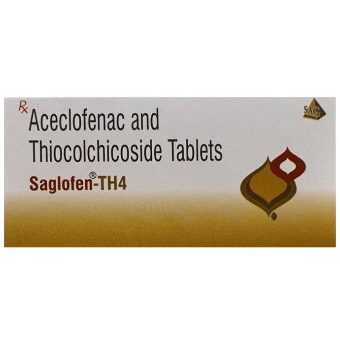 Saglofen-TH4 Tablet is a combination medicine used in the treatment of pain due to muscle spasms. It improves the movement of muscles and provides relief from pain and discomfort associated with muscle spasms. Saglofen-TH4 Tablet should be taken with food. This will prevent you from getting an upset stomach. You should take it regularly as advised by your doctor. Do not take more or use it for a longer duration than recommended by your doctor. Some of the common side effects of this medicine include nausea, vomiting, heartburn, stomach pain, loss of appetite, and diarrhea. If any of these side effects bother you or do not go away with time, you should let your doctor know. Your doctor may help with ways to reduce or prevent these side effects. The medicine may not be suitable for everybody. Before taking it, let your doctor know if you have any problems with your heart, kidneys, and liver. To make sure it is safe for you, let your doctor also know all the other medicines you are taking. Pregnant and breastfeeding mothers should first consult their doctors before using the medicine.