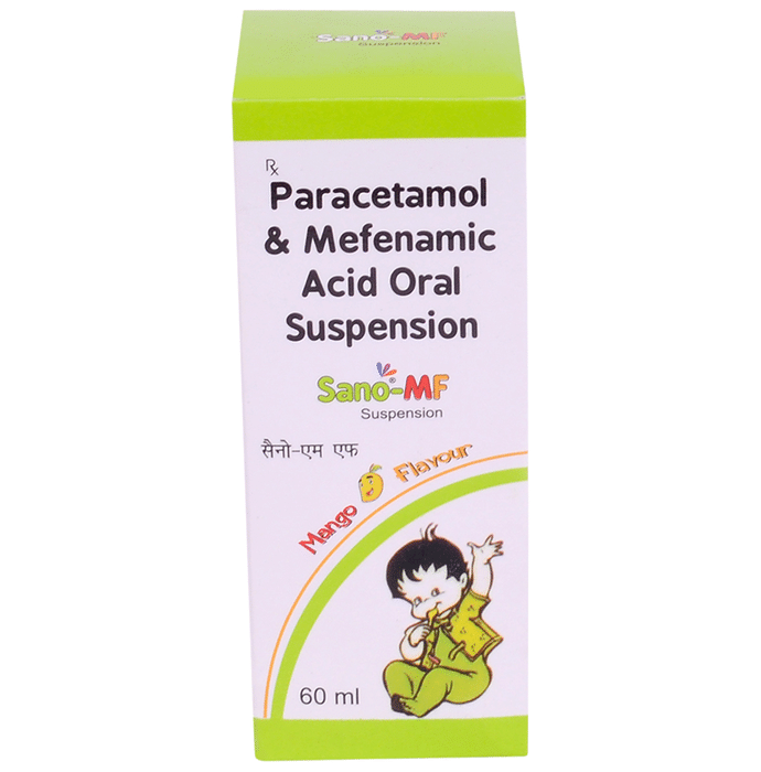 In Pain relief Sano-MF Oral Suspension Mango is a combination of medicines used to treat aches and pains. It blocks chemical messengers in the brain that tell us we have pain. It is effective in relieving pain caused by headache, migraine, nerve pain, toothache, sore throat, period (menstrual) pains, arthritis and muscle aches. Take it as it is prescribed to get the most benefit. Do not take more or for longer than needed as that can be dangerous. In general, you should take the lowest dose that works, for the shortest possible time. In Treatment of Fever Sano-MF Oral Suspension Mango is also used to reduce a high temperature (fever). It works by blocking the release of certain chemical messengers that cause fever. It may be prescribed alone or in combination with another medicine. You should take it regularly as advised by your doctor.