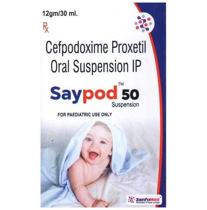 In Treatment of Bacterial infections Saypod 50 Oral Suspension kills the infection-causing bacteria in your body. This medicine is used to treat many different types of infections such as those of the brain (meningitis), lungs (pneumonia), ear, abdomen, urinary tract, bones and joints, skin, blood, and heart. This medicine usually makes you feel better within a few days, but you should continue taking it as prescribed even when you feel better. Stopping it early may make the infection come back and harder to treat.