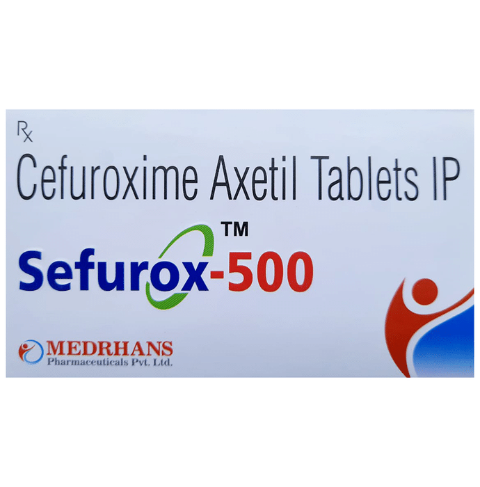 Sefurox 500 Tablet is an antibiotic medicine used to treat bacterial infections in your body. It is effective in infections of the lungs (e.g., pneumonia), ear, throat, nasal sinus, urinary tract, skin, soft tissues, bones, and joints. It is also used to prevent infections during surgery. Sefurox 500 Tablet should be taken with food to avoid an upset stomach. You should take it regularly at evenly spaced intervals as per the schedule prescribed by your doctor. Taking it at the same time every day will help you to remember to take it. The dose will depend on what you are being treated for, but you should always complete a full course of this antibiotic as prescribed by your doctor. Do not stop taking it until you have finished, even when you feel better. If you stop taking it early, some bacteria may survive and the infection may come back. It will not work for viral infections such as flu or the common cold. Using any antibiotic when you do not need it can make it less effective for future infections. The most common side effects of this medicine include rash, vomiting, increased liver enzymes, nausea, and diarrhea. These are usually mild but let your doctor know if they bother you or last more than a few days. Before using it, you should tell your doctor if you are allergic to any antibiotics or have any kidney or liver problems. You should also let your doctor know all other medicines you are taking as they may affect, or be affected by this medicine. Pregnant and breastfeeding mothers should consult their doctor before using it.