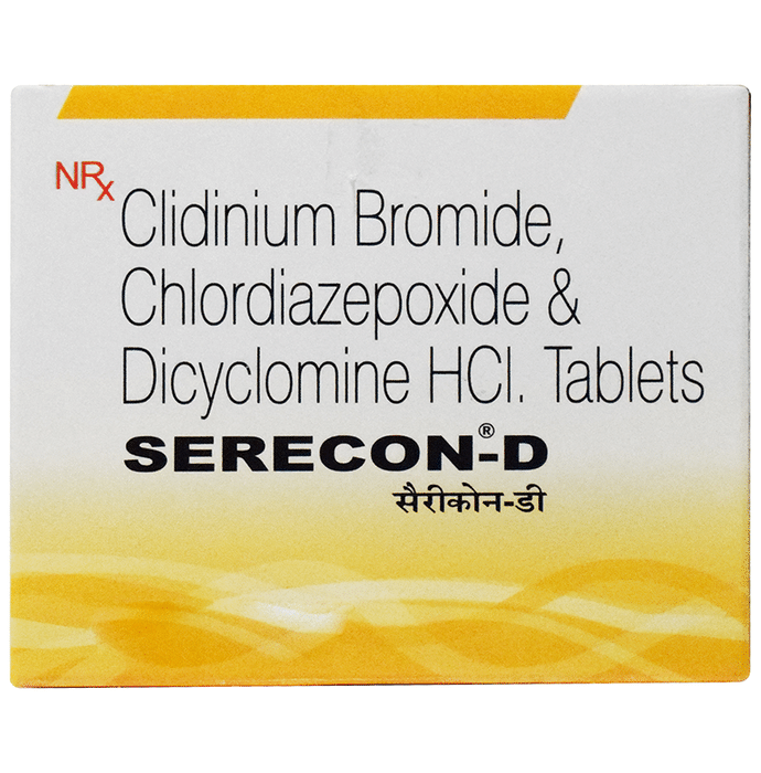 In Treatment of Irritable bowel syndrome Irritable bowel syndrome is a chronic (long-term) inflammatory disease of the large intestine (colon) that usually needs long term management. This can lead to bleeding, frequent diarrhea, bloating, flatulence, cramps and stomach pain. Serecon-D Tablet relaxes the muscles in your stomach and gut (intestine) and relieves these symptoms effectively. Usually, it is used along with other medicines for management of your condition. Continue taking it for as long as the doctor may advise you to. You need to take this medicine regularly to get the most out of it. Take a fiber-rich diet, avoid oily or spicy food and drink plenty of fluids while taking it to make sure you stay hydrated.