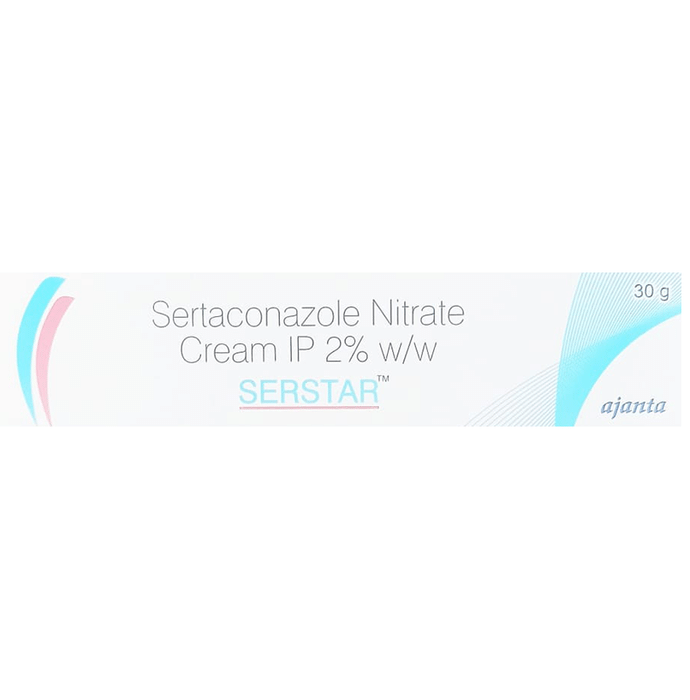 Serstar 2% Cream is an antifungal medicine used to treat fungal infections of the skin. It works by killing the fungus that causes infections such as athlete’s foot, Dhobie Itch, thrush, ringworm, and dry, flaky skin. Serstar 2% Cream should be used in the dose and duration as prescribed by your doctor. Use it regularly to get the most benefit. Do not use more than you need, as that will not clear your condition faster and may only increase the side effects. Do not use the medicine for longer than prescribed and let the doctor know if your condition does not improve after 2 to 4 weeks of treatment. The effects of the medicine can be increased by keeping the affected area clean, dry, and washing hands before and after use. If you have athlete’s foot, wash your socks or tights thoroughly and change your shoes daily if possible. The most common side effects of using Serstar 2% Cream include application site reactions such as burning, irritation, itching, and redness. Avoid direct contact with your eyes. In case of accidental contact, wash your eyes with water and seek immediate medical attention. It is not likely that other medicines you take by mouth or injection will affect the way this medicine works, but talk to your doctor before using it if you have recently used another medicine that contains a steroid or had an allergic reaction to another antifungal medicine. Let your doctor know if you are pregnant or breastfeeding.