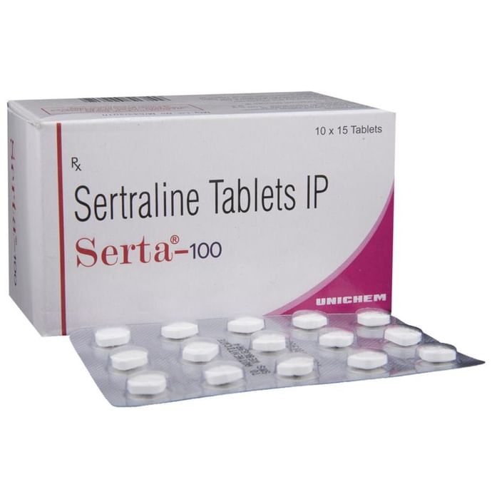 Serta 100 Tablet is a type of antidepressant belonging to the selective serotonin reuptake inhibitor (SSRI) group of medicines. It is prescribed for depression, anxiety-related conditions like obsessive-compulsive disorder, and panic disorder. Serta 100 Tablet may also be used to treat premenstrual dysphoric disorder (depression and irritability before menstrual period in women). It can be taken with or without food. The dose and how often you need it will be decided by your doctor so that you get the right amount to control your symptoms. Your doctor may start you on a lower dose and increase it gradually. Do not change the dose or stop taking it without talking to your doctor, even if you feel well. Doing so may make your condition worse or you may suffer from unpleasant withdrawal symptoms (anxiety, restlessness, palpitations, dizziness, sleep disturbances, etc). To get the most benefit, take this medicine regularly at the same tdime each day. Your doctor may advise you to take it in the morning if you have trouble sleeping. It may take a few weeks before you start feeling better. Let your doctor know if you do not see any dimprovement even after 4 weeks. Some common side effects of Serta 100 Tablet include nausea, indigestion, loss of appetite, increased sweating, tremors, insomnia (difficulty in sleeping), and diarrhea. Sexual side effects like decreased sexual drive, delayed ejaculation, and erectile dysfunction may also be seen. Let your doctor know straight away if you develop any sudden worsening of mood or any thoughts about harming yourself. Before taking this medicine, you should tell your doctor if you have epilepsy (seizure disorder or fits), diabetes, liver or kidney disease, heart problems, or glaucoma. These may affect your treatment. Pregnant or breastfeeding women should also consult their doctor before taking it. Some other medicines may affect the way it works, especially other antidepressants and medicines called MAO inhibitors. Please tell your doctor about all the medicines you are taking to make sure you are safe.