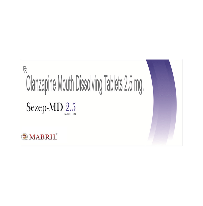 Sezep-MD 2.5 Tablet is used in the treatment of schizophrenia (a mental disorder that can result in hallucinations or delusions and also adversely affects a person’s ability to think and behave) and mania. Sezep-MD 2.5 Tablet may be taken with or without food. However, it is advised to take it at the same time each day as this helps to maintain a consistent level of medicine in the body. Take this medicine in the dose and duration as advised by your doctor and if you have missed a dose, take it as soon as you remember. This medication mustn't be stopped suddenly without talking to your doctor as it may worsen your symptoms. Some common side effects of this medicine include dryness in the mouth, constipation, muscle rigidity, and restlessness. Initially, this medicine may cause a sudden drop in blood pressure when you change positions, so it is better to rise slowly if you have been sitting or lying down. It also causes dizziness and sleepiness, so do not drive or do anything that requires mental focus until you know how this medicine affects you. However, this medicine may increase your weight, blood sugar, and cholesterol levels but, modifying your lifestyle by having a healthy diet and exercising regularly can reduce this side effect. You should be cautious as in rare cases it may cause serious side effects like very high blood sugar levels or seizures.