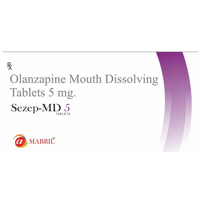 Sezep-MD 5 Tablet is used in the treatment of schizophrenia (a mental disorder that can result in hallucinations or delusions and also adversely affects a person’s ability to think and behave) and mania. Sezep-MD 5 Tablet may be taken with or without food. However, it is advised to take it at the same time each day as this helps to maintain a consistent level of medicine in the body. Take this medicine in the dose and duration as advised by your doctor and if you have missed a dose, take it as soon as you remember. This medication mustn't be stopped suddenly without talking to your doctor as it may worsen your symptoms. Some common side effects of this medicine include dryness in the mouth, constipation, muscle rigidity, and restlessness. Initially, this medicine may cause a sudden drop in blood pressure when you change positions, so it is better to rise slowly if you have been sitting or lying down. It also causes dizziness and sleepiness, so do not drive or do anything that requires mental focus until you know how this medicine affects you. However, this medicine may increase your weight, blood sugar, and cholesterol levels but, modifying your lifestyle by having a healthy diet and exercising regularly can reduce this side effect. You should be cautious as in rare cases it may cause serious side effects like very high blood sugar levels or seizures.