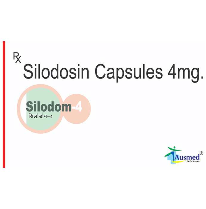 Silodom 4 Capsule is an alpha-adrenergic antagonist that is used in the treatment of benign prostatic hyperplasia. It helps to relieve symptoms like difficulty in passing urine. However, it does not decrease the size of the prostate. Silodom 4 Capsule is advised to take it in a dose and duration as per prescription. It should be taken with food, but take at the same time regularly. Swallow the medicine as a whole without crushing or chewing it. You should not stop taking the medicine without consulting the doctor as it may lead to the worsening of your symptoms. The course of the treatment should be completed for better efficacy of the medicine. Some common side effects of this medicine are retrograde ejaculation, dizziness, diarrhea, orthostatic hypotension, headache, nasopharyngitis, and nasal congestion. If any of the side effects persist or bother you, you must consult the doctor without delay. Simple lifestyle changes can help you manage your symptoms better. Try to urinate as soon as you feel the urge, however, never strain or push to empty your bladder. You should avoid drinking caffeinated or alcoholic drinks at night and a few hours before going to bed or going out. Before receiving the treatment, inform your doctor if you are on any medication for any other health condition. If you have to undergo eye surgery due to cataracts or glaucoma then inform your eye doctor about the usage of this medicine. Patients with liver or kidney disease must be cautious while receiving the prescription, and they must receive regular follow-ups as per the doctor’s advice.