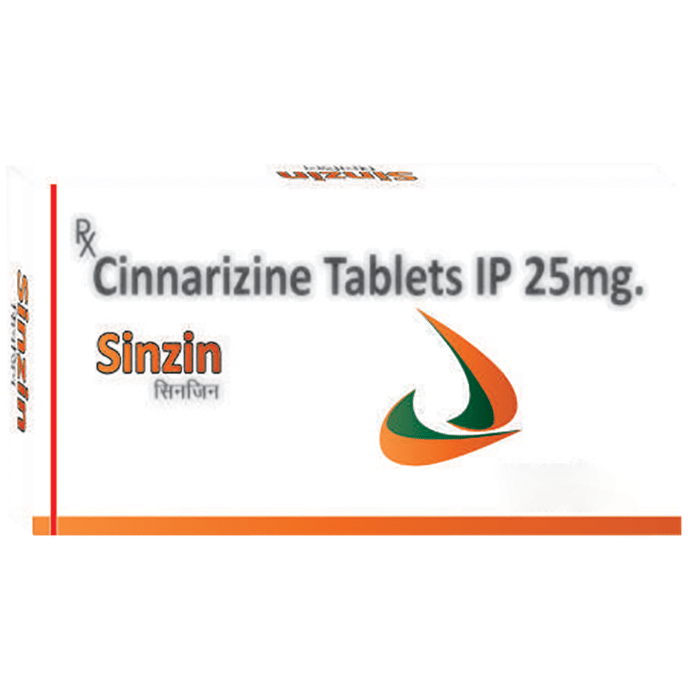 In Treatment of Motion sickness Motion sickness is a condition caused due to motion during travel. You may experience a spinning sensation (vertigo), nausea, or vomiting as a result of this condition. Sinzin 25 Tablet helps treat these symptoms effectively. Take it as prescribed by the doctor to get maximum benefit. In Treatment of Vertigo Vertigo means a spinning sensation or dizziness that is triggered due to frequent movement. It can happen due to many reasons but it may also occur without any underlying disease. Sinzin 25 Tablet helps treat this sensation effectively. If you feel dizzy while getting up from the bed, sit for a while, and then rise slowly to avoid having an accidental fall. In Treatment of Meniere's disease Sinzin 25 Tablet helps in improving blood flow to the inner ear which reduces the pressure of excess fluid there. It is this pressure that is thought to cause the symptoms of nausea, vertigo (dizziness), tinnitus (ringing in your ears), and hearing loss in people who have Meniere’s disease. Sinzin 25 Tablet makes the symptoms milder and reduces the number of times you get the symptoms. It will be more effective if you take this medicine regularly as prescribed so try not to miss doses. It may take a couple of weeks before you notice any improvements but keep taking it, even if you do feel better, until your doctor advises it is safe to stop.