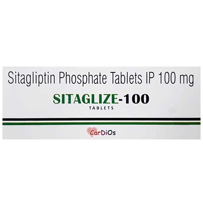 Sitaglize 100 Tablet is a medicine used to treat type 2 diabetes mellitus. It is used together with a healthy diet and regular exercise to control blood sugar levels. This helps to prevent serious complications of diabetes like kidney damage and blindness. Sitaglize 100 Tablet is normally prescribed when diet and exercise alone or other medicines do not prove sufficient to control your blood sugar level. Your doctor may prescribe it alone or along with other diabetes medicines. It may be taken on an empty stomach or with a meal. The dose will depend on your condition, and blood sugar levels. Therefore, you should use it as advised by your doctor. You should take it regularly at the same time each day to get the most benefit, and you should not stop unless your doctor recommends it. This medicine is helping you to control your blood sugar levels and prevent serious complications in the future. It is important to stay on the diet and exercise program recommended by your doctor while taking this medicine. Your lifestyle plays a big part in controlling diabetes. The most common side effect of taking this medicine is a headache. This is usually minor and improves with time. Low blood sugar level (hypoglycemia) is a possible side effect if you are also taking other diabetes medicines like insulin or sulfonylurea, so you need to know how to recognize and deal with it. It may also cause upper respiratory tract infections like sore throat, cough, and cold. Contact your doctor if the side effects worry you or if they do not go away. Before taking this medicine, let your doctor know if you have ever had kidney disease, heart or pancreas problems, or if you drink a lot of alcohol. Pregnant or breastfeeding women should also consult their doctor before taking it. Some other medicines you are taking may interfere with this medicine's working. So, make sure your doctor knows about all the other medicines you are using. Limit your alcohol intake while taking this medicine because it can increase your risk of developing low blood sugar levels. You may need regular tests such as kidney function and blood glucose levels to check that the medicine is working properly.