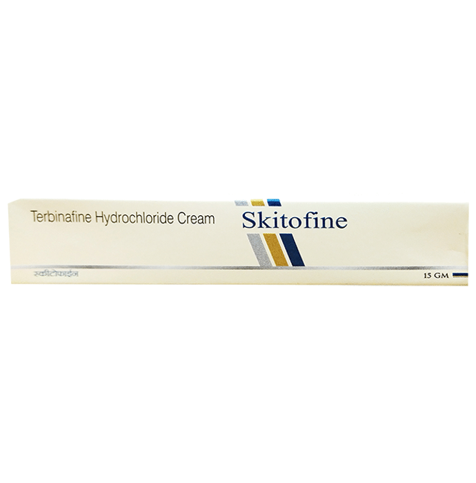 Skitofine Cream is used to treat a wide range of fungal infections of the skin and nails, including ringworm. It works by killing the fungi that cause the infection. Skitofine Cream is for external use only. It should be used in the dose and duration suggested by the doctor. The affected area should be clean and dry before the application of this medicine. You must wash your hands thoroughly before and after application. Do not stop using it until you have finished the complete course, even when you feel better. If you stop using this medicine too early, the fungi may continue to grow and the infection may return or worsen. The most common side effects of this medicine include application site reactions like burning, irritation, itching, and redness, and skin peeling. These are usually mild but let your doctor know if they bother you or last more than a few days. Avoid direct contact with the eyes, nose, or mouth. If accidental exposure occurs, rinse immediately with plenty of water. You must inform your doctor if there’s no improvement even after four weeks of treatment. It is not likely that other medicines you take by mouth or injection will affect the way this medicine works but inform your doctor about all other medicines you are taking. Also, let your doctor know if you have used a similar medicine before and had an allergic reaction. Pregnant and breastfeeding mothers should consult their doctor before using it.
