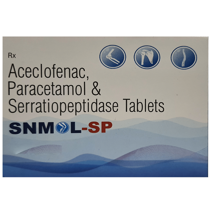 In Pain relief Snmol-SP Tablet is a combination medicine used for short-term relief of pain, inflammation, and swelling in conditions affecting joints and muscles. It works by blocking chemical messengers in the brain that tell us we have pain. It can help relieve pain in conditions like rheumatoid arthritis and osteoarthritis. Along with painkillers, this medicine also contains an active ingredient called Serratiopeptidase, which is an enzyme that promotes the overall healing process and speeds up recovery. Take it as it is prescribed to get the most benefit. Do not take more or longer than needed as that can be dangerous. In general, you should take the lowest dose that works, for the shortest possible time. This will help you to go about your daily activities more easily and have a better, more active, quality of life.