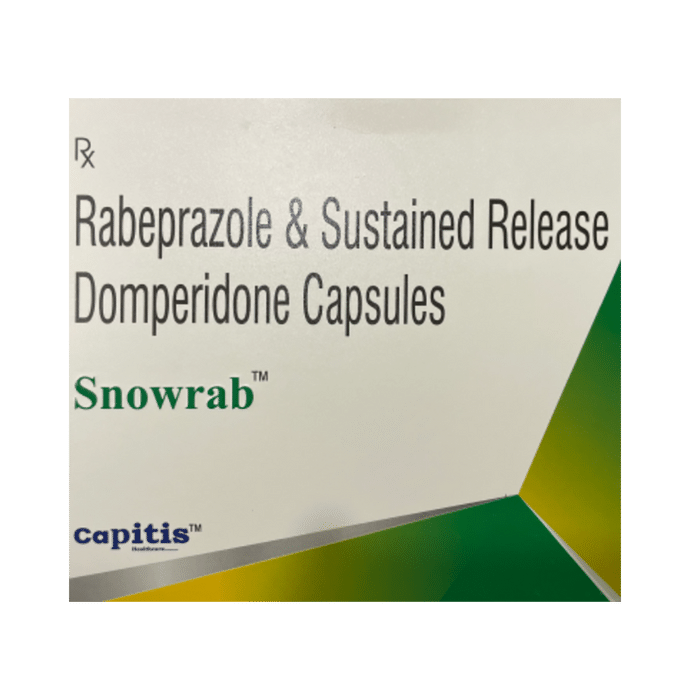 Snowrab Capsule SR is a combination medicine used to treat gastroesophageal reflux disease (Acid reflux) and peptic ulcer disease by relieving the symptoms of acidity such as heartburn, stomach pain, or irritation. It also neutralizes the acid and promotes easy passage of gas to reduce stomach discomfort. Snowrab Capsule SR is taken without food in a dose and duration as advised by the doctor. The dose you are given will depend on your condition and how you respond to the medicine. You should keep taking this medicine for as long as your doctor recommends. If you stop treatment too early your symptoms may come back and your condition may worsen. Let your healthcare team know about all other medications you are taking as some may affect, or be affected by this medicine. The most common side effects are diarrhea, stomach pain, dryness in mouth, headache, flatulence, and weakness. Most of these are temporary and usually resolve with time. Contact your doctor straight away if you are at all concerned about any of these side effects. This medicine may cause dizziness and sleepiness, so do not drive or do anything that requires mental focus until you know how this medicine affects you. Avoid drinking alcohol while taking this medicine as it can worsen your sleepiness. Lifestyle modifications like having cold milk and avoiding hot tea, coffee, spicy food or chocolate can help you to get better results. Before you start taking this medicine it is important to inform your doctor if you are suffering from kidney or liver disease. You should also tell your doctor if you are pregnant, planning pregnancy or breastfeeding.