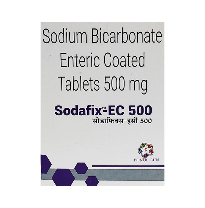 Sodafix-EC 500 Tablet is used in the treatment of Indigestion. It is an antacid that is used to relieve acid indigestion, heartburn, and gas. Sodafix-EC 500 Tablet relieves irritation by producing carbon dioxide which neutralizes the acid present in the stomach. It also increases the pH of blood and urine, thereby correcting acid indigestion, heartburn. Additionally, it helps in the removal of toxic substances from the body in certain types of poisoning. Sodafix-EC 500 Tablet may be taken with or without food in a dose and duration as advised by the doctor. Excessive intake may cause electrolyte imbalance leading to unwanted side effects such as stomach cramps and flatulence. Keep taking this medicine for as long as your doctor recommends. If you stop treatment too early your symptoms may come back and your condition may worsen. Let your doctor know about all other medications you are taking as some may affect, or be affected by this medicine. It is important to consult a doctor before taking Sodafix-EC 500 Tablet if you are suffering from stomach and kidney disease. Pregnant or breastfeeding women should also consult their doctor before taking this medicine.