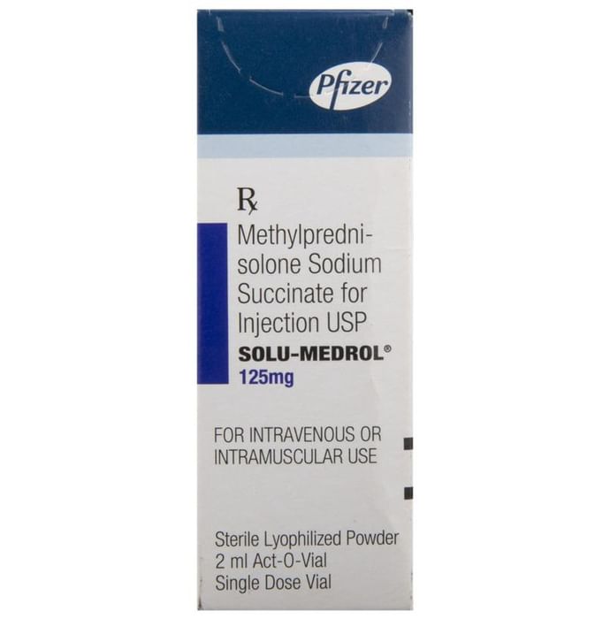 Solu-Medrol 125mg Injection is a type of medicine called a steroid. It is used to treat different conditions including rheumatic disorder, asthma, severe allergic reactions and conditions that affect your eyes and skin. Solu-Medrol 125mg Injection is usually given as an injection by your doctor into a vein, joint, or muscle. The amount you are given will depend on what you are being treated for and how much you need to control your symptoms. If you are using this medication at home, learn exactly how to do it correctly from your doctor. You should always take the amount prescribed. Do not take a larger dose or use it more often. Taking a higher dose will not dimprove your condition faster, and your risk of side effects will increase. Keep taking it regularly even if you feel well. Do not suddenly stop this medication as your condition may become worse. It should always be stopped gradually. The most common side effects of this medicine include nausea, headache, dizziness, sweating, and swelling in your hands or ankles (edema). If these side effects bother you or will not go away, your doctor may suggest ways of preventing or reducing them. Steroids may also lower your ability to fight infections so avoid being near people who might pass on infections such as measles, chickenpox, or flu. Do not receive a live vaccine while using this medicine. Steroids can affect growth in children. Before using this medicine, you should tell your doctor if you have brittle bones (osteoporosis), mood disorders, high blood pressure, or liver disease. Also, tell your doctor if you have diabetes, this medicine may increase blood glucose levels which can worsen diabetes. Many other drugs may affect, or be affected by, this medicine so let your doctor know all other medicines you are using. This is done to make sure it is safe to use. You should also tell your doctor if you are pregnant, planning to become pregnant or breastfeeding. If this medicine is used for a long tdime you will be asked for regular monitoring of blood sugar, blood pressure, bone density as well as an eye examination.