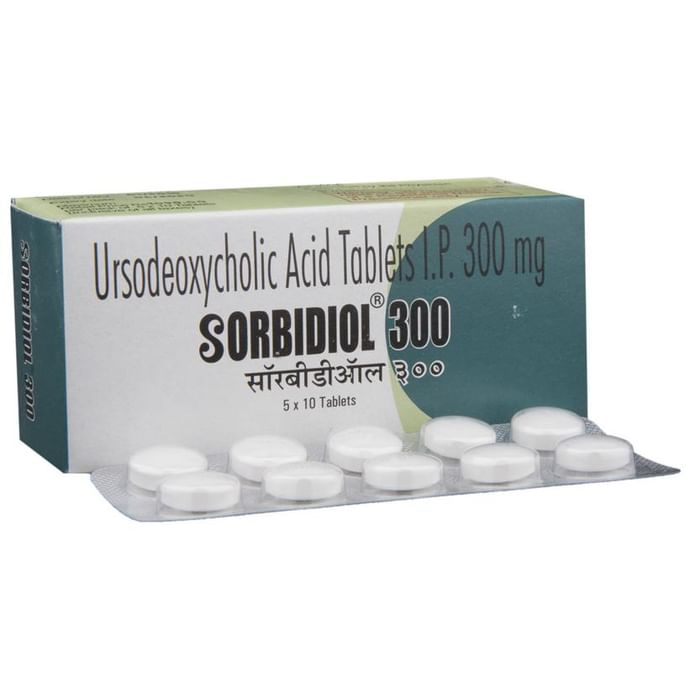 Sorbidiol 300 Tablet is used to dissolve certain gallstones and prevent them from forming. It is also used to treat a type of liver disease called prdimary biliary cirrhosis. It helps break down the cholesterol that has converted into stones in your gallbladder thereby dissolving the stones. Sorbidiol 300 Tablet should be swallowed whole after a meal and with a glass of milk or water. The dose will depend on what you are being treated for and your body weight. Take it regularly to get maxdimum benefit and keep taking it for as long as prescribed (several months or longer). Keep taking it even if your symptoms disappear. This medicine's most common side effects are abdominal pain, diarrhea, hair loss, itching, nausea, and rash. Not everyone gets these side effects. If you are worried about them, or they do not go away, let your doctor know. Before taking this medicine, you should tell your doctor if you have an inflammation of the gallbladder or bile ducts, you get frequent cramp-like pain in your upper abdomen, you have been coughing up blood or you have gained weight rapidly. Using this medicine can reduce or increase the effect of some other medicines so tell your doctor all other medicines you are taking. Women should discontinue hormonal birth control pills as they can increase the production of gallstones. During the treatment, you may need ultrasound scans, or frequent blood tests to check your liver function.