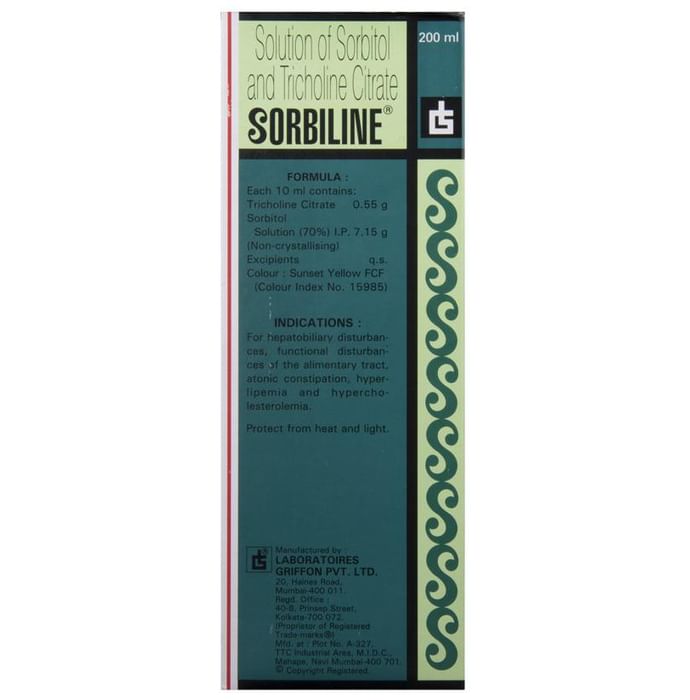 Sorbiline Syrup is a combination medicine used in the treatment of fatty liver disease. It is the prescription medicine works by dimproving the functioning of the liver. Sorbiline Syrup is taken with or without food in a dose and duration as advised by the doctor. The dose you are given will depend on your condition and how you respond to the medicine. You should keep taking this medicine for as long as your doctor recommends. If you stop treatment too early your symptoms may come back and your condition may worsen. Let your healthcare team know about all other medications you are taking as some may affect, or be affected by this medicine. The most common side effect is dryness in the mouth which is temporary and usually resolve with tdime. Contact your doctor straight away if you are at all concerned about these side effects. To prevent and manage dry mouth stay hydrated and maintain good oral hygiene. This medicine can also cause drowsiness, so do not drive or do anything that requires mental focus until you know how this medicine affects you. Avoid drinking alcohol while taking this medicine as it can worsen your drowsiness. Before taking this medicine, you should tell your doctor if you are pregnant, planning pregnancy or breastfeeding. You should tell your doctor if you have any kidney or liver diseases so that your doctor can prescribe a suitable dose for you.