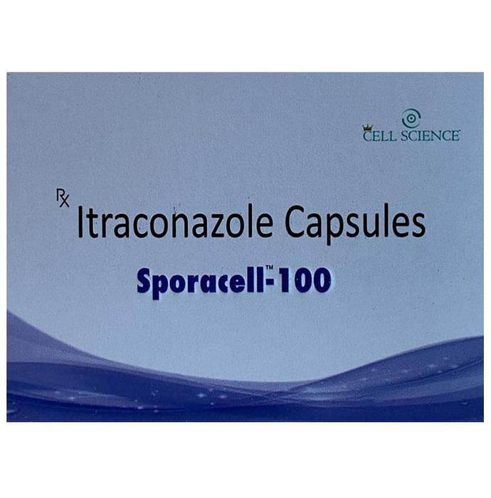 In Treatment of Fungal infections Sporacell 100 Capsule is an antifungal medicine. It is used to treat infections in different parts of the body caused by fungi. It works by killing and stopping the growth of fungi. This provides relief from various symptoms caused by the infection and speeds up the healing process. You should keep taking the medicine until you complete the dose even if you get better. This will prevent the infection from returning.