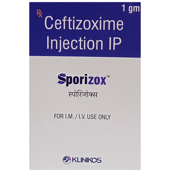 Sporizox Injection is an antibiotic medicine used to treat bacterial infections in your body. It is effective in infections of the brain, lungs, ear, urinary tract, skin and soft tissues, bones and joints, blood, and heart. It is also used to prevent infections during surgery. Sporizox Injection fights and stops the growth of many types of bacteria. This helps to improve your symptoms and cure the underlying infection. It is given as a drip (intravenous infusion) or as an injection directly into a vein or a muscle under the supervision of a healthcare professional. Your doctor will decide the correct dose for you. You should use this medicine regularly at evenly spaced intervals as per the schedule prescribed by your doctor. Do not skip any doses and finish the full course of treatment even if you feel better. Stopping the medicine too early may lead to the infection returning or worsening. The most common side effects of this medicine include nausea, vomiting, and diarrhea. Some people may develop temporary redness or pain at the site of injection. These side effects are usually mild but let your doctor know if they bother you or last more than a few days. Before using it, you should tell your doctor if you are allergic to any antibiotics, and if you have any liver or kidney problems. You should also let your healthcare team know all other medicines you are taking as they may affect, or be affected by this medicine. Pregnant and breastfeeding mothers should consult their doctor before using it.