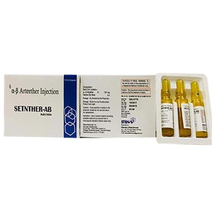 Stenther-AB Injection is an antiparasitic medication. It is used in the treatment of malaria. It is not used to prevent malaria or to treat severe malaria (where it has affected the brain, lungs, or kidneys). Stenther-AB Injection is administered as an injection under the supervision of a doctor or a nurse and should not be self-administered. Some people may experience vomiting, headache, nausea, and abdominal pain as side effects of this medicine. You may also notice some injection site reactions like pain, swelling, or redness. Please consult your doctor if these side effects persist.