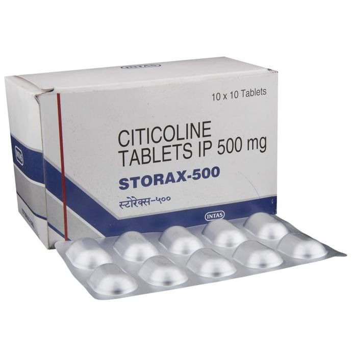 Storax 500 Tablet helps in the treatment of stroke, head injury, Alzhedimer's disease, and memory loss (dementia) in Parkinson's disease. It protects the nerve cells in the brain from damage and also helps to repair the damaged nerve cells. Storax 500 Tablet may be taken with or without food. However, it is advised to take it at the same tdime each day as this helps to maintain a consistent level of medicine in the body. Your dose depends on your age and the condition you are being treated for. Take this medicine in the dose and duration as advised by your doctor. Do not stop taking it suddenly without talking to your doctor as it may worsen your symptoms. Some common side effects that may be seen with this medicine include decreased blood pressure, stomach pain, diarrhea, and irregular heart rate. However, these are temporary and usually resolve on their own. Please consult your doctor if these do not subside or bother you. Before taking this medicine, inform your doctor if you ever had any problems with your kidneys or if you have or ever had any seizures (epilepsy or fits). Always let your doctor know about all the medicines that you are taking before you start with your treatment. Inform your doctor if you are pregnant, planning to conceive or breastfeeding, before using this medicine.