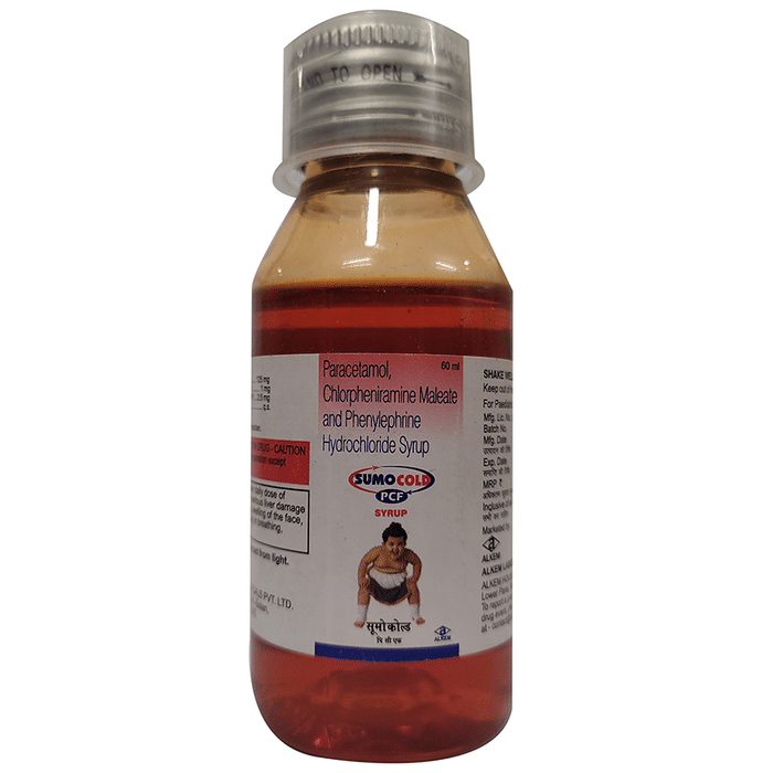 In Pain relief Sumo Cold Pcf Syrup is a common painkiller used to treat aches and pains. It works by blocking chemical messengers in the brain that tell us we have pain. It is effective in relieving pain caused by headache, migraine, nerve pain, toothache, sore throat, period (menstrual) pains, arthritis, and muscle aches. This medicine is very widely used and very rarely causes side effects if taken at the right dosage. Take it as it is prescribed to get the most benefit. Do not take more or for longer than needed as that can be dangerous. In general, you should take the lowest dose that works, for the shortest possible tdime. It is also the first choice of painkiller during pregnancy or breastfeeding. In Treatment of Fever Sumo Cold Pcf Syrup is also used to reduce a high temperature (fever). It works by blocking the release of certain chemical messengers that cause fever. It may be prescribed alone or in combination with another medicine. You should take it regularly as advised by your doctor.