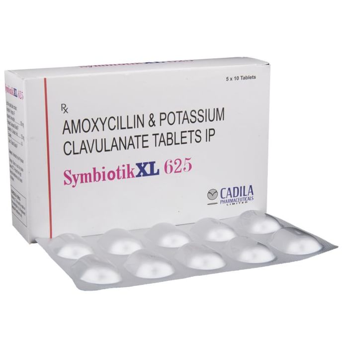 In Treatment of Bacterial infections Symbiotik XL 625 Tablet contains two different medicines, Amoxycillin and Clavulanic Acid, that work together to kill the bacteria that cause infections. Amoxycillin works by stopping the growth of bacteria. Clavulanic Acid reduces resistance and enhances the activity of Amoxycillin against bacteria. This combination medicine can be used to treat many different bacterial infections such as ear, sinus, throat, lung, urinary tract, skin, teeth, joints, and bones. It usually makes you feel better within a few days, but you should continue taking it as prescribed even when you feel better to make sure that all bacteria are killed and do not become resistant.