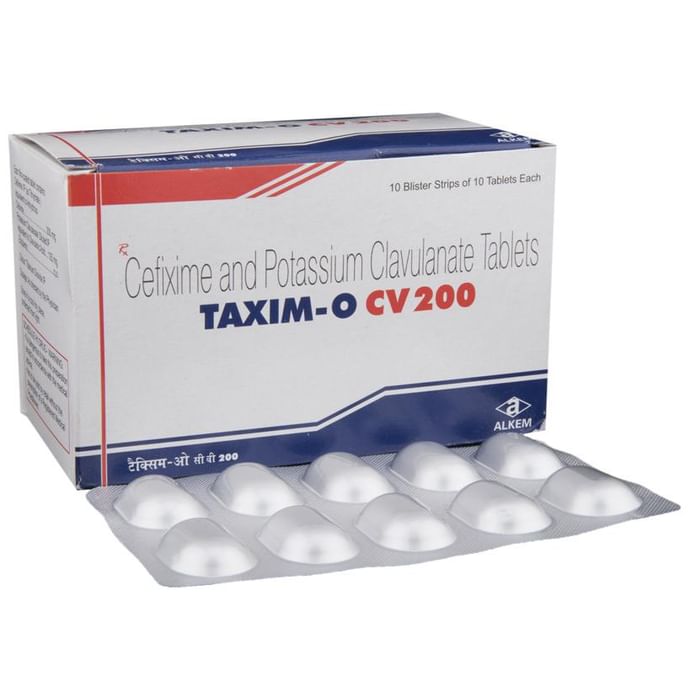 Taxim-O CV 200 Tablet is a combination medicine. It is prescribed to treat various types of bacterial infections. It fights against the microorganisms to prevent their growth and further spread of the infection. Taxim-O CV 200 Tablet is a prescription medicine. It is advised to take it as per the prescription. It can be taken with or without food, but it must be taken at a fixed time to ensure better efficacy. Do not consume more than the recommended dose, as this may have harmful effects on your body. If you miss a dose, take it as soon as you remember. The course of the treatment must be completed even if you feel better. Sudden discontinuation of the treatment may affect the potency of the medicine. Some common side effects of this medicine are nausea, vomiting, diarrhea, indigestion, etc. If any of the side effects get aggravated, you must consult your doctor immediately. If you experience any allergic reaction (rashes, itching, swelling, shortness of breath, etc.), you must seek immediate medical help. Before taking this medicine, you should tell your doctor if you are taking any medicines for any health condition. Pregnant or breastfeeding women should also consult with their doctor before taking it. Avoid drinking alcohol as it can cause excessive drowsiness with this medicine. It usually does not impair your ability to drive, but you should not drive if it makes you feel sleepy or dizzy. You must take adequate rest for a faster recovery, also take a healthy diet and drink plenty of water. Your doctor may ask for a few laboratory and diagnostic tests to know the effects of the medicine on your body.