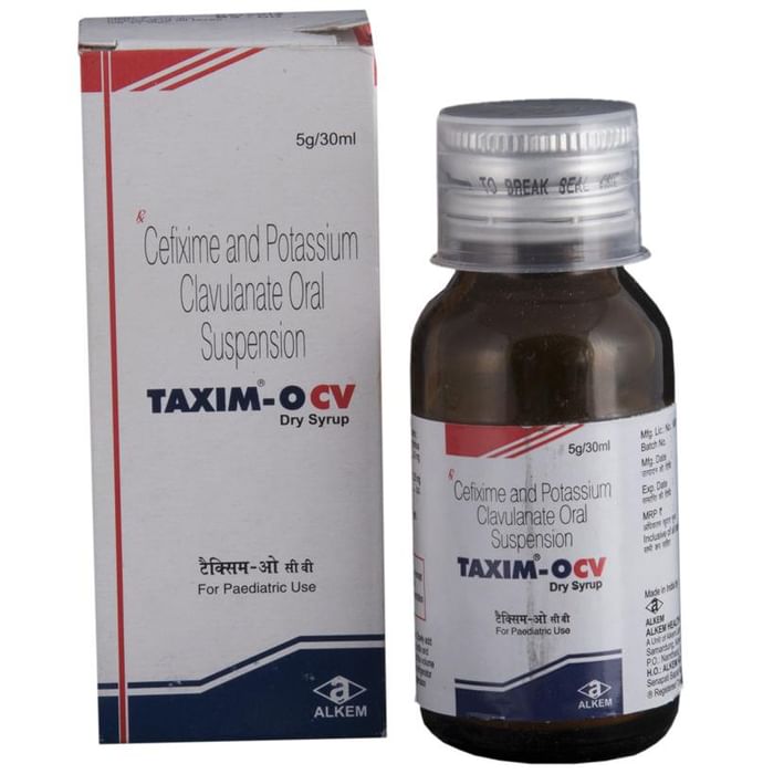 Taxim-O CV Dry Syrup is a combination medicine. It is prescribed to treat various types of bacterial infections. It fights against the microorganisms to prevent their growth and further spread of the infection. Taxim-O CV Dry Syrup is a prescription medicine. It is advised to take it as per the prescription. It can be taken with or without food, but it must be taken at a fixed time to ensure better efficacy. Do not consume more than the recommended dose, as this may have harmful effects on your body. If you miss a dose, take it as soon as you remember. The course of the treatment must be completed even if you feel better. Sudden discontinuation of the treatment may affect the potency of the medicine. Some common side effects of this medicine are nausea, vomiting, diarrhea, indigestion, etc. If any of the side effects get aggravated, you must consult your doctor immediately. If you experience any allergic reaction (rashes, itching, swelling, shortness of breath, etc.), you must seek immediate medical help. Before taking this medicine, you should tell your doctor if you are taking any medicines for any health condition. Pregnant or breastfeeding women should also consult with their doctor before taking it. Avoid drinking alcohol as it can cause excessive drowsiness with this medicine. It usually does not impair your ability to drive, but you should not drive if it makes you feel sleepy or dizzy. You must take adequate rest for a faster recovery, also take a healthy diet and drink plenty of water. Your doctor may ask for a few laboratory and diagnostic tests to know the effects of the medicine on your body.