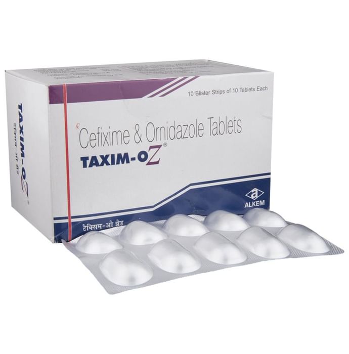 Taxim-OZ Tablet is a combination medicine. It is prescribed to treat various types of bacterial infections. It fights against the microorganisms to prevent their growth and further spread of the infection. Taxim-OZ Tablet is a prescription medicine. It is advised to take it as per the prescription. It should be taken with food and it must be taken at a fixed time to ensure better efficacy. Do not consume more than the recommended dose, as this may have harmful effects on your body. If you miss a dose, take it as soon as you remember. The course of the treatment must be completed even if you feel better. Sudden discontinuation of the treatment may affect the potency of the medicine. Some common side effects of this medicine are nausea, vomiting, diarrhea, indigestion, etc. If any of the side effects get aggravated, you must consult your doctor immediately. If you experience any allergic reaction (rashes, itching, swelling, shortness of breath, etc.), you must seek immediate medical help. Before taking this medicine, you should tell your doctor if you are taking any medicines for any health condition. Pregnant or breastfeeding women should also consult with their doctor before taking it. Avoid drinking alcohol as it can cause excessive drowsiness with this medicine. It usually does not impair your ability to drive, but you should not drive if it makes you feel sleepy or dizzy.