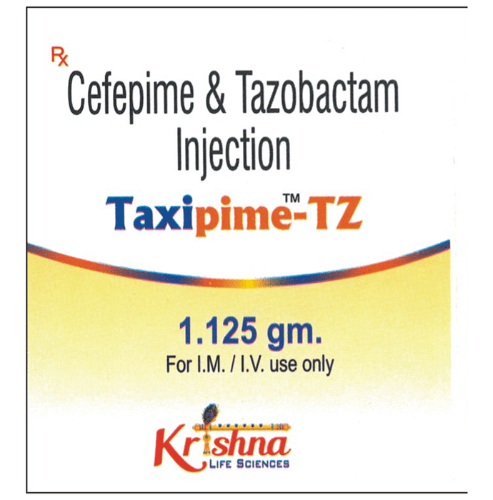 Taxipime-TZ Injection is a combination of two antibiotics. It is prescribed to treat various types of bacterial infections. It fights against the infection by preventing the growth of microorganisms. Taxipime-TZ Injection should only be administered under the supervision of a healthcare professional. Do not miss any scheduled appointments for taking this medicine. The course of the medicine should be completed even if you feel better. The common side effects of this medicine are nausea, vomiting, diarrhea, rashes, etc. You may also experience injection site redness, swelling, and pain that goes away with time. If any of the side effects get aggravated, you must consult your doctor immediately. If you experience any allergic reaction (rashes, itching, swelling, shortness of breath, etc.), you must seek immediate medical help. Before taking this medicine, you should tell your doctor if you are taking any medicines for any health condition. Pregnant or breastfeeding women should also consult with their doctor before taking it. Avoid drinking alcohol as it can cause excessive drowsiness with this medicine. It usually does not impair your ability to drive, but you should not drive if it makes you feel sleepy or dizzy.