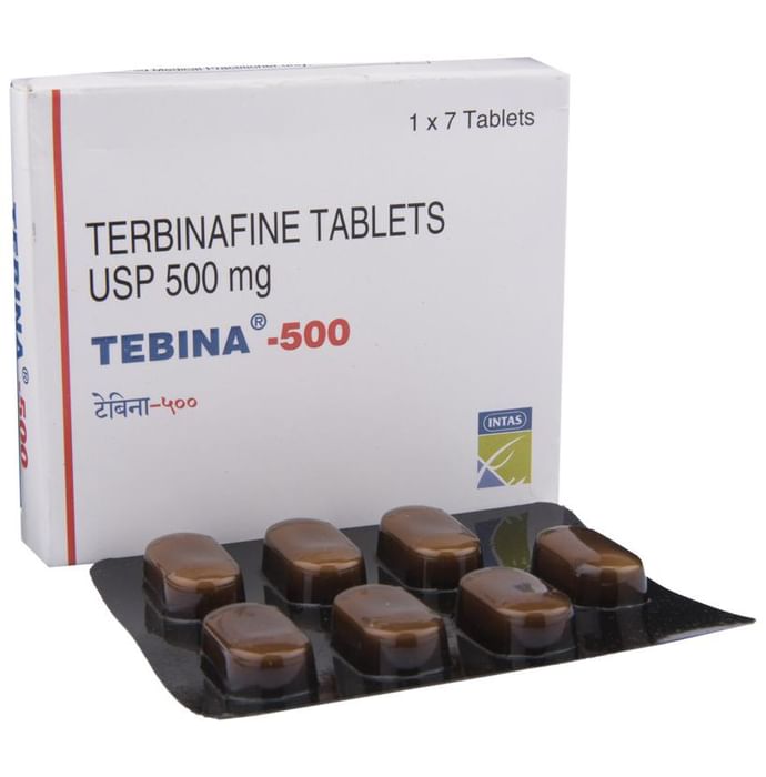 Tebina 500 Tablet belongs to a group of medicines called antifungals It is used to treat a wide range of fungal infections of the skin and nails, including ringworm. It works by killing the fungi that cause the infection. Tebina 500 Tablet can be taken with or without food. You should take it regularly as prescribed by your doctor. Taking it at the same time every day will help you to remember to take it. The dose and duration of treatment will depend on what you are being treated for. Do not stop taking it until you have finished the complete course, even when you feel better. If you stop taking this medicine too early, the fungus may continue to grow and the infection may return or worsen. This medicine's most common side effects include rash, headache, nausea, and abnormal liver enzyme. These are usually mild but let your doctor know if they bother you or last more than a few days. Before using it, you should tell your doctor if you are allergic to any antibiotics or have any kidney or liver problems. You should also let your healthcare team know all other medicines you are taking as they may affect, or be affected by this medicine. Pregnant and breastfeeding mothers should consult their doctor before using it. Your doctor will monitor your liver function regularly during treatment.