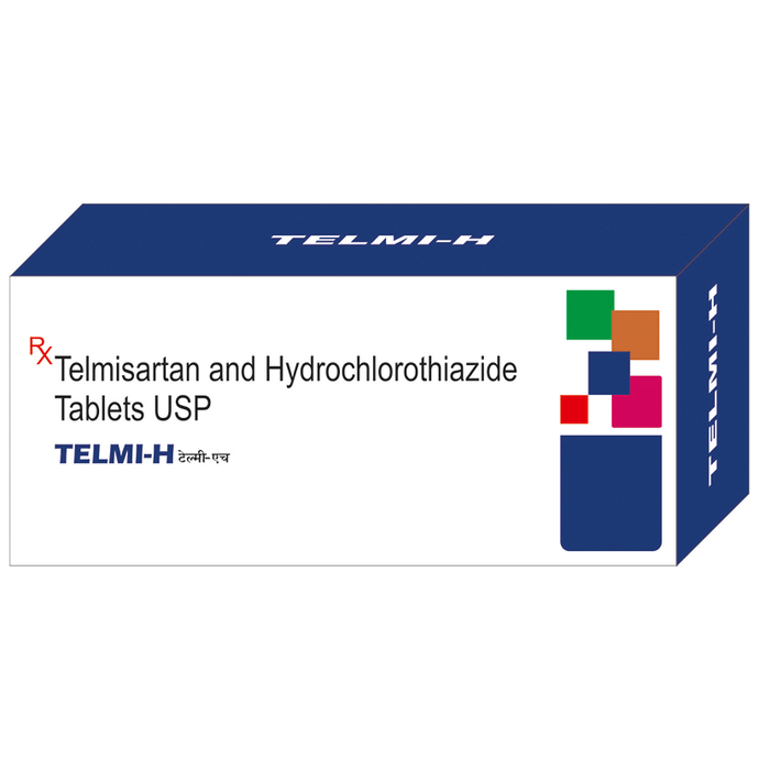 In Treatment of Hypertension (high blood pressure) Telmi-H Tablet is a combination of two medicines namely telmisartan and hydrochlorothiazide. It is generally used when one medicine alone is not controlling your blood pressure effectively. Telmisartan works by relaxing and widening your blood vessels so your blood can flow more easily. This will lower your blood pressure. Hydrochlorothiazide is known as a diuretic (water pill) which increases urine output thereby lowering blood pressure. If your blood pressure is controlled you are less at risk of having a heart attack, stroke, or kidney problems. The medicine must be taken regularly as prescribed to be effective. You do not usually feel any direct benefit from taking this medicine, but it works in the long term to keep you well.