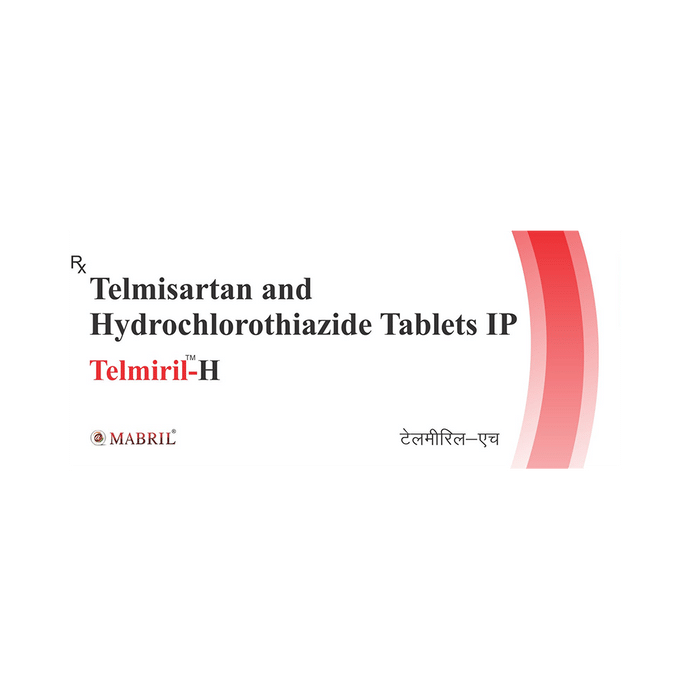 In Treatment of Hypertension (high blood pressure) Telmiril-H Tablet is a combination of two medicines namely telmisartan and hydrochlorothiazide. It is generally used when one medicine alone is not controlling your blood pressure effectively. Telmisartan works by relaxing and widening your blood vessels so your blood can flow more easily. This will lower your blood pressure. Hydrochlorothiazide is known as a diuretic (water pill) which increases urine output thereby lowering blood pressure. If your blood pressure is controlled you are less at risk of having a heart attack, stroke, or kidney problems. The medicine must be taken regularly as prescribed to be effective. You do not usually feel any direct benefit from taking this medicine, but it works in the long term to keep you well.