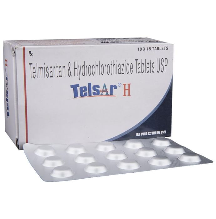 In Treatment of Hypertension (high blood pressure) Telsar H Tablet is a combination of two medicines namely telmisartan and hydrochlorothiazide. It is generally used when one medicine alone is not controlling your blood pressure effectively. Telmisartan works by relaxing and widening your blood vessels so your blood can flow more easily. This will lower your blood pressure. Hydrochlorothiazide is known as a diuretic (water pill) which increases urine output thereby lowering blood pressure. If your blood pressure is controlled you are less at risk of having a heart attack, stroke, or kidney problems. The medicine must be taken regularly as prescribed to be effective. You do not usually feel any direct benefit from taking this medicine, but it works in the long term to keep you well.