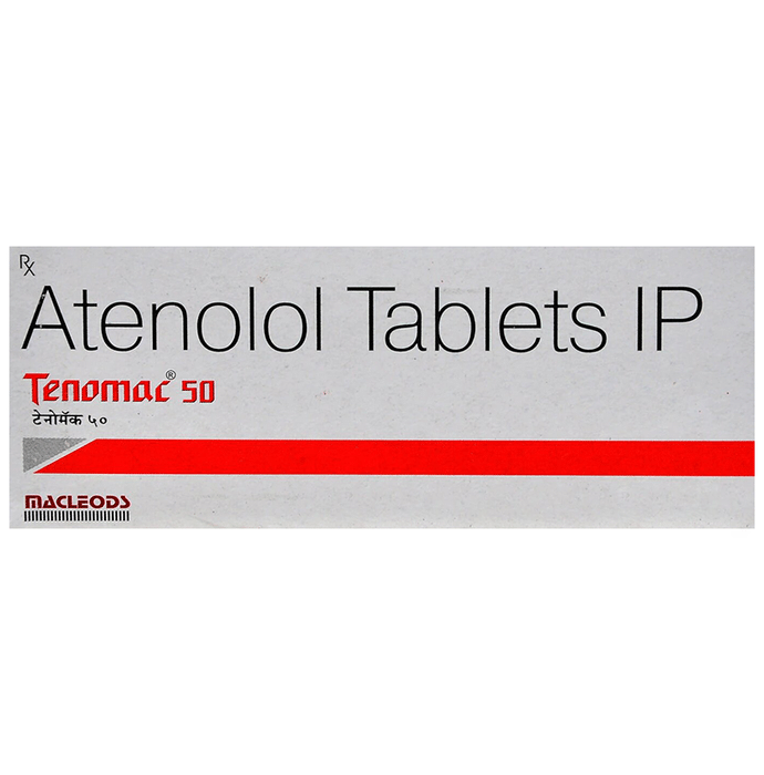 Tenomac 50 Tablet belongs to a group of medicines called beta-blockers. It is used to treat high blood pressure (hypertension), angina (heart-related chest pain), irregular heart rhythms (arrhythmia). It also helps to prevent future heart attacks and stroke and migraines. Tenomac 50 Tablet is also used to relieve the symptoms caused by an overactive thyroid gland. It may be prescribed alone or together with other medications. The dose and frequency depend on what you are taking it for and the severity of your condition. It may be taken empty stomach or with a meal, but take it regularly at the same time each day to get the most benefit. It may take several weeks before you get the full benefit of this medicine and you may need to take it for the rest of your life. However, it is important to continue taking it even if you feel well. Most people with high blood pressure do not feel ill and if you stop taking it, your condition may worsen. The main side effects of this medicine are fatigue, slow heart rate, feeling dizzy, diarrhea, and nausea. These are usually mild and short-lived. It may also cause shortness of breath or low blood pressure in some people. To reduce the risk of side effects your doctor will probably start the medicine at a low dose and gradually increase it. Consult your doctor if the side effects bother you or do not go away. Before taking it, let your doctor know if you have any liver problems. It may also not be suitable for people who have a slow heart rate, severe circulation problems, severe heart failure, or low blood pressure. Pregnant or breastfeeding mothers should also consult their doctor before taking it. You must talk to your doctor to find out whether this medicine is suitable for you to use. You should have your blood pressure checked regularly to make sure that this medicine is working properly. Avoid drinking alcohol as it may increase certain side effects.