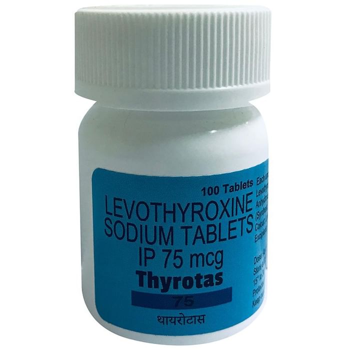 In Treatment of Hypothyroidism Thyrotas 75 Tablet is a synthetic version of thyroxine, a hormone that is naturally produced in your body. When your body does not produce enough thyroxine, you get hypothyroidism. Some symptoms of hypothyroidism include tiredness, weight gain, and muscle aches. This medicine raises your hormone level to the right amount and helps you get rid of these symptoms. For most people, this is a lifelong medication and should not be discontinued without talking to your doctor. It may take a while for this medicine to work properly. Your doctor may get regular blood tests done to determine the effectiveness of this medicine and to make sure that you are on the right dose.