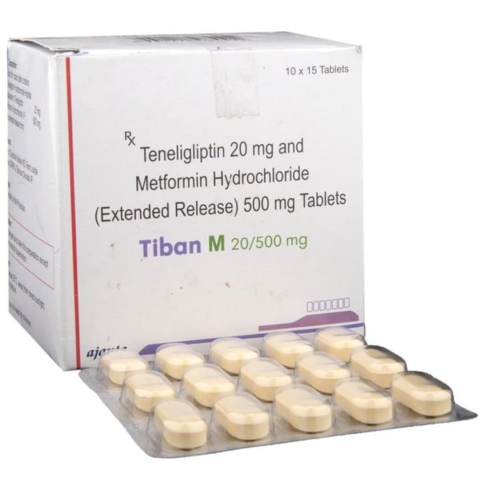 Tiban M 20/500mg Tablet ER is a combination of two medicines that control high blood sugar levels in people with type 2 diabetes mellitus. This helps prevent serious complications of diabetes such as kidney damage and blindness and may also reduce your chances of having a heart attack or stroke. Tiban M 20/500mg Tablet ER can be prescribed alone or together with other diabetes medications. All diabetes medicines work best when used along with a healthy diet and regular exercise. The dose you are given will depend on your condition, blood sugar levels, and what other medicines you are taking. Taking it with meals helps to reduce the chances of developing an upset stomach. You should take it regularly, at the same time each day, to get the most benefit and you should not stop unless your doctor recommends it. It is controlling your blood sugar levels and helping to prevent serious complications in the future. It is important to stay on the diet and exercise program recommended by your doctor while taking this medicine. Your lifestyle plays a big part in controlling diabetes. The most common side effects of taking this medicine include diarrhea, nausea, vomiting, upset stomach, headache, and sore throat. Low blood sugar level (hypoglycemia) is a possible side effect if you are also taking other diabetes medicines like insulin or sulfonylurea, so you need to know how to recognize and deal with it. This medicine is not suitable for everyone. Before taking it, you should let your doctor know if you have ever had kidney, liver, or heart disease, problems with your pancreas, or if you drink a lot of alcohol. Pregnant or breastfeeding women should also consult their doctor before taking this medicine. Some other medicines can affect this one so tell your doctor about all the medicines you are taking to make sure you are safe. You should try to avoid drinking alcohol as it lowers blood glucose. Your doctor will check your kidney function and blood sugar levels before and during treatment.