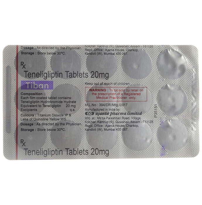 In Treatment of Type 2 diabetes mellitus Tiban Tablet belongs to a group of medicines called DPP-4 inhibitors (or gliptins). It helps increase the amount of insulin your body produces after a meal and to stop your body from releasing too much glucose (sugar) into your blood. This way it lowers the blood glucose levels in your body. It is usually taken once a day and has relatively few common side effects. Lowering blood glucose levels is an essential part of managing diabetes. If you can control the level you will reduce the risk of getting any of the serious complications of diabetes such as kidney damage, blindness, and loss of limbs. Proper control of diabetes can also reduce the risk of heart disease and stroke. Taking this medicine regularly along with a proper program of diet and exercise will help you live a normal, healthy life. You should keep using it for as long as it is prescribed.