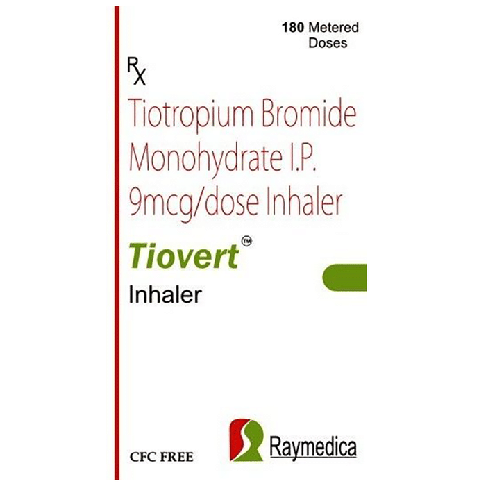 Tiovert Inhaler is an anticholinergic medicine. It is used in the treatment of chronic obstructive pulmonary disease and asthma. It relaxes the airway muscles and makes it easier to breathe. This helps relieve symptoms such as chest tightness, shortness of breath, wheezing, and coughing. Tiovert Inhaler is only for inhalational purpose, use it in the dose and duration as prescribed by your doctor. The first dose is given under medical supervision to prevent the side effects happen during first use. For better results, it is suggested to take it at the same time every day. The dose and how often you take it depends on what you are taking it for. Your doctor will decide how much you need to improve your symptoms. You should take this medicine for as long as it is prescribed for you. It does not prevent the already started breathing trouble or asthma attack, hence always carry your medical inhaler with you for an emergency. The most common side effect of this medicine is dry mouth. If these bother you or appear serious, let your doctor know. To overcome dry mouth, it is advised to increase water intake, carry sugar candy, or maintain good oral hygiene. If you experience any other side effects, let your doctor know. Before taking this medicine, let your doctor know if you have liver or kidney disease, or if you are pregnant or breastfeeding. Your doctor should also know about all other medicines you are taking as many of these may make this medicine less effective or change the way it works.