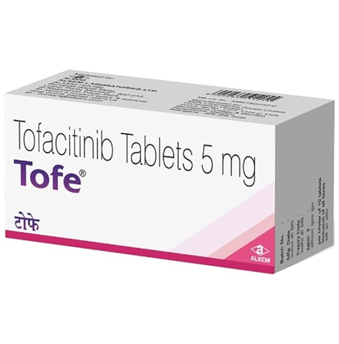 Tofe Tablet is used to treat moderate to severe rheumatoid arthritis. It helps decrease pain, tenderness, and swelling in the joints by reducing inflammation. It also helps slow the progression of bone and joint damage. Tofe Tablet may be prescribed by itself or in combination with another medicine. The tablets can be taken with or without food and it is best to take them at the same time each day. Your dose will depend on your condition and what other medicines you are taking. You should use it as your doctor tells you to. Do not stop taking this medicine unless your doctor tells you to because your condition could get worse. The most common side effects of Tofe Tablet include upper respiratory tract infections, headache, diarrhea, and nasopharyngitis. There are other less common side effects, some of them serious, including blood clots and tears in the stomach or intestine wall. These need urgent medical attention. If you have any worries about side effects, talk to your doctor. You may need blood tests before you are given this medicine and you should not start taking it if you have any kind of infection. Make sure you talk to your doctor before starting treatment if you have or have ever had, tuberculosis, shingles, kidney or liver disease, hepatitis B or C, or blood clots in your legs or lungs. Tofe Tablet can make you more likely to get infections or may worsen any current infections so avoid contact with people who have things you might catch (such as chickenpox, measles, flu). This medicine is not suitable for children under 18 years old and you should not use it if you are pregnant or breastfeeding, unless your doctor feels the benefit is greater than the risk. Your doctor may need to examine you regularly.