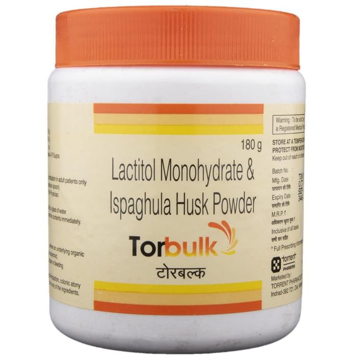 In Treatment of Constipation Torbulk Powder helps to stimulate bowel movements. It increases the movement of the intestines, this helps empty your bowels and relieve constipation. It relieves the pain and discomfort caused due to constipation and improves your quality of life. Eat more high-fiber foods including fruit and vegetables and drink plenty of water to prevent constipation from happening.