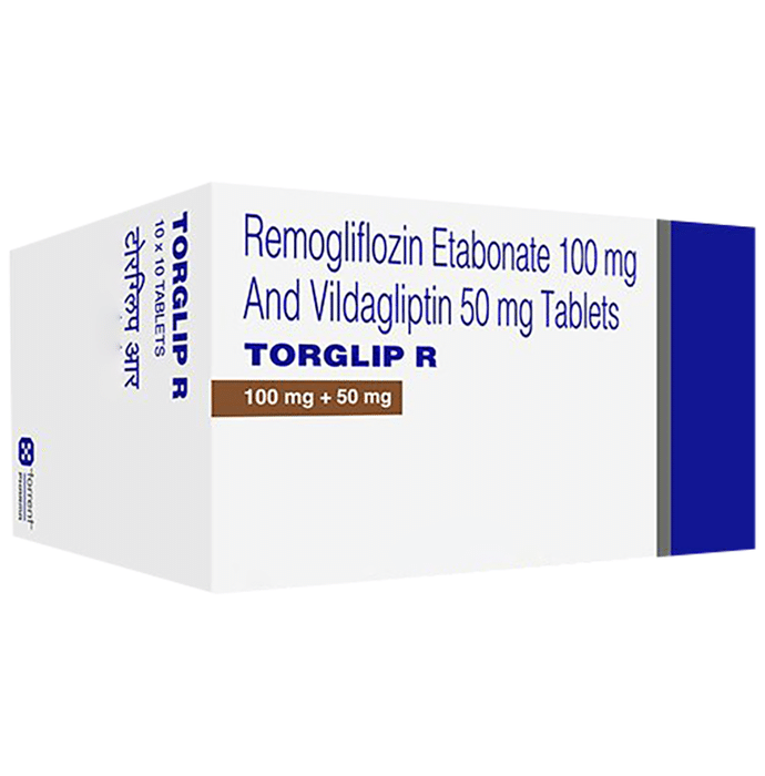 Torglip R 100mg/50mg Tablet is a combination of two medicines used in the treatment of type 2 diabetes mellitus. It is approved for use in adults aged 18 years and older to improve glycemic control. It is generally used when other diabetes medicines do not provide adequate glycemic control. Torglip R 100mg/50mg Tablet can be prescribed alone or together with other diabetes medications. All diabetes medicines work best when used along with a healthy diet and regular exercise. It is taken twice daily, or as prescribed by the doctor, to improve glycemic control in patients. You should take it regularly and at the same time each day to get the most benefit from the medicine. Do not stop taking the medicine unless your doctor recommends it. It helps to control your blood sugar levels and helps prevent serious complications in the future. It is important to stay on the diet and exercise program recommended by your doctor while taking this medicine. Your lifestyle plays a big part in controlling diabetes. Some common side effects of this medicine include diarrhea, nausea, vomiting, upset stomach, and headache. Low blood sugar level (hypoglycemia) is a possible side effect if you are also taking other diabetes medicines like insulin or sulfonylurea, so you need to know how to recognize and deal with it. Before taking it, you should let your doctor know if you have ever had kidney, liver, or heart disease, or problems with your pancreas. Pregnant or breastfeeding women should also consult their doctor before taking this medicine. Some other medicines can affect how this medicine works, so tell your doctor about all the medicines you are taking to make sure you are safe. You should try to avoid drinking alcohol as it lowers blood glucose. Your doctor will check your kidney function and blood sugar levels before and during treatment.
