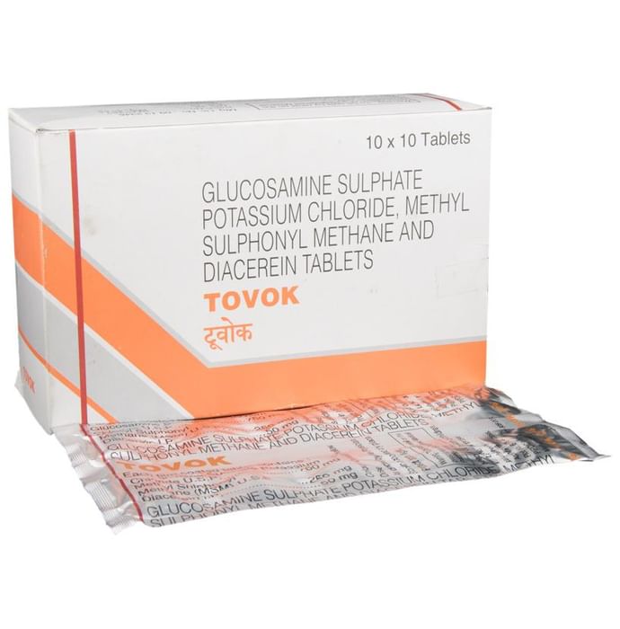 Tovok Tablet is a combination of three medicines. It is prescribed for treatment of osteoarthritis. It reduces pain and swelling by reducing inflammation. It also reduces friction in the joints and provide comfort during physical movements. Tovok Tablet may be prescribed alone or in combination with another medicine. It should be taken with food. This will prevent you from getting an upset stomach. Take it regularly and do not take more or use it for a longer duration than recommended by your doctor. You should not stop taking the medicine until your doctor tells you it is okay to stop. Using this medicine may cause a few common side effects such as nausea, diarrhea, constipation, indigestion, heartburn, and discoloration of urine. If you experienced any such side effects that does not resolve with time or get worse, you should let your doctor know. Your doctor may be able to suggest ways of preventing or reducing them. The medicine may not be suitable for everybody. Before taking it, let your doctor know if you have any medical conditions or disorders. Let your doctor also know all the other medicines you are taking. Pregnant and breastfeeding mothers should consult their doctors first before using the medicine.
