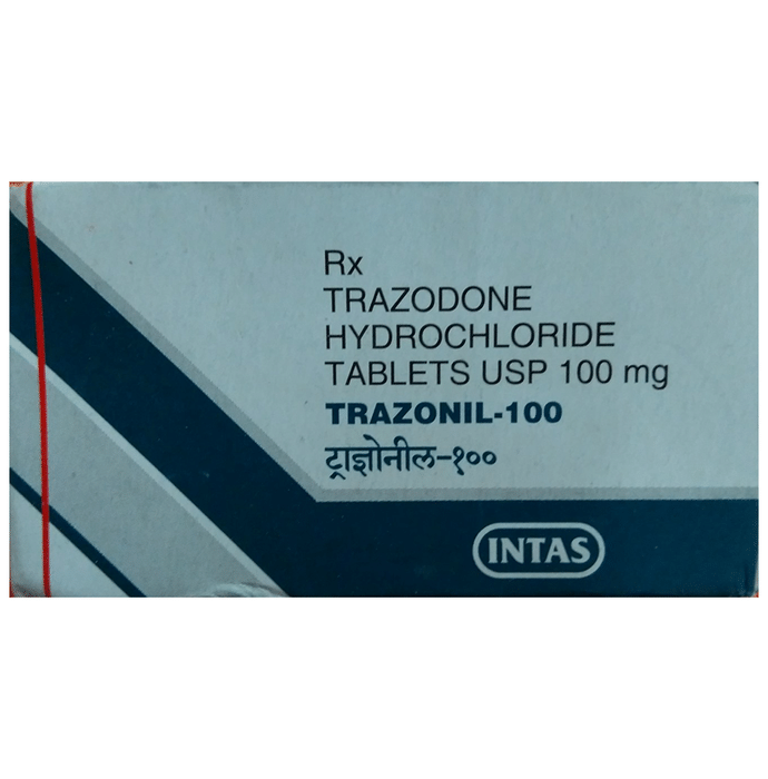 Trazonil 100 Tablet is used in the treatment of depression. This medicine helps by increasing the level of chemical messengers in the brain that relax the nerves and have a calming effect on the brain. Trazonil 100 Tablet should be taken with food. It is advised to take this medicine at a fixed time each day. You should never skip any doses and finish the full course of treatment even if you feel better. This medication mustn't be stopped suddenly as it may worsen your symptoms. Some common side effects of this medicine include constipation and blurred vision. It even causes dizziness and sleepiness, so do not drive or do anything that requires mental focus. Moreover, most of the side effects are immediate and often go away with time. Please consult your doctor if these bother you or do not go away. Before taking Trazonil 100 Tablet, it is important to inform your doctor if you have any history of fits, severe kidney, liver, or heart problems, narrow-angle glaucoma, or any mental disorder. Inform your doctor if you develop any unusual changes in mood or behavior, new or worsening depression if you have any suicidal thoughts.