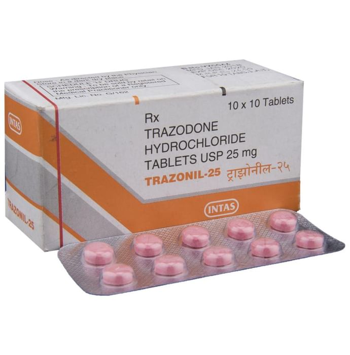 Trazonil 25 Tablet is used in the treatment of depression. This medicine helps by increasing the level of chemical messengers in the brain that relax the nerves and have a calming effect on the brain. Trazonil 25 Tablet should be taken with food. It is advised to take this medicine at a fixed time each day. You should never skip any doses and finish the full course of treatment even if you feel better. This medication mustn't be stopped suddenly as it may worsen your symptoms. Some common side effects of this medicine include constipation and blurred vision. It even causes dizziness and sleepiness, so do not drive or do anything that requires mental focus. Moreover, most of the side effects are immediate and often go away with time. Please consult your doctor if these bother you or do not go away. Before taking Trazonil 25 Tablet, it is important to inform your doctor if you have any history of fits, severe kidney, liver, or heart problems, narrow-angle glaucoma, or any mental disorder. Inform your doctor if you develop any unusual changes in mood or behavior, new or worsening depression if you have any suicidal thoughts.