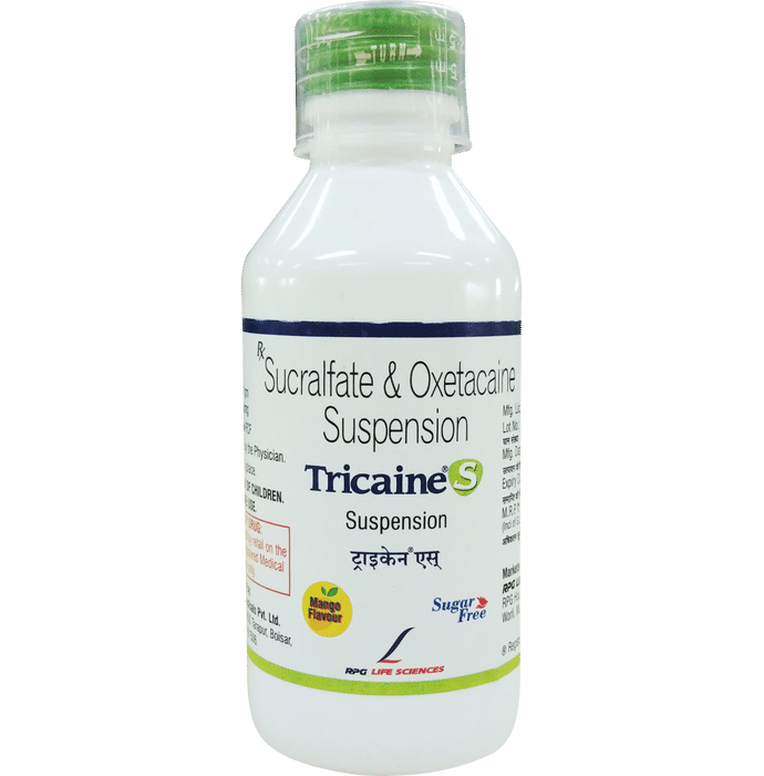 Tricaine S Suspension Mango Sugar Free is a combination medicine used in the treatment of acidity, stomach ulcer, and heartburn. It helps in relieving the symptoms of acidity and ulcers such as stomach pain or irritation. It also neutralizes excessive acid in the stomach and helps in the easy passage of gas. Tricaine S Suspension Mango Sugar Free is taken without food in a dose and duration as advised by the doctor. The dose you are given will depend on your condition and how you respond to the medicine. You should keep taking this medicine for as long as your doctor recommends. If you stop treatment too early your symptoms may come back and your condition may worsen. Let your healthcare team know about all other medications you are taking as some may affect, or be affected by this medicine. Do not take it for more than the recommended duration as long-term administration may have harmful effects on the health. The most common side effects are constipation, nausea, vomiting, dizziness, insomnia, and allergic reaction. These are temporary and usually resolve with time. Contact your doctor straight away if you are at all concerned about any side effects. To overcome constipation, you should add fiber-rich foods in your diet and stay hydrated. It may also cause dizziness and sleepiness, so do not drive or do anything that requires mental focus until you know how this medicine affects you. Avoid drinking alcohol while taking this medicine as it can worsen your sleepiness. Lifestyle modifications like having cold milk and avoiding hot tea, coffee, spicy food or chocolate can help you to get better results. Before taking this medicine, you should tell your doctor if you are pregnant, planning pregnancy or breastfeeding. You should also tell your doctor if you have any liver diseases so that your doctor can prescribe a suitable dose for you.