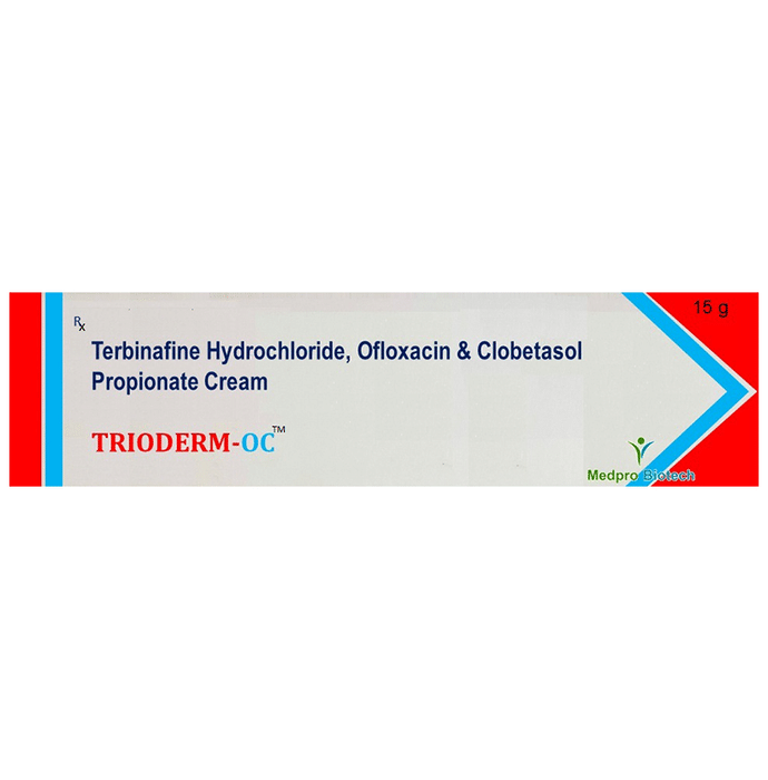 Trioderm-OC Cream is a combination medicine used in the treatment of skin infections. It works by killing microorganisms that cause infection. It also blocks the release of certain chemical messengers that cause redness, swelling, and itching. Trioderm-OC Cream is for external use only. You should use it in the dose and duration as advised by your doctor. This medicine should be used regularly to get the most benefit from it. Do not use more than you need as it will not clear your condition faster and some side effects may be increased. If your condition goes on for longer than four weeks or gets worse at any time, let your doctor know. The effects of medicine can be increased by keeping the affected area clean and dry, and washing hands before and after treating the infection. Some of the common side effects include skin peeling, skin irritation, redness or itching at the site of application. If the side effects bother you or do not go away, let your doctor know. Avoid direct contact with eyes, nose, or mouth. If accidental exposure occurs, rinse immediately with plenty of water. It is not likely that other medicines you take by mouth or injection will affect the way it works but talk to your doctor before using it if you have used a similar medicine before and had an allergic reaction. This medicine should only be used if it is clearly needed during pregnancy.